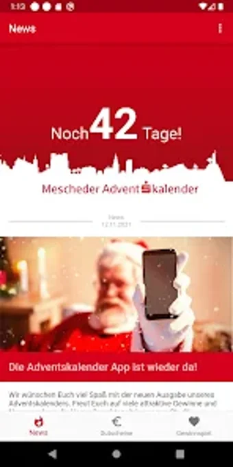 Mescheder Adventskalender är en gratis app för Android som gör nedräkningen till julen till en rolig och interaktiv upplevelse. Från den 1 till den 24 december kan användare delta i ett spännande lotteri med omedelbara vinster varje dag. Genom att skaka snökulan får man chansen att vinna olika priser, vilket ger en extra dimension av spänning under adventstiden. Dessutom kan användare ta del av kreativa hälsningar från lokala föreningar och institutioner, vilket skapar en känsla av gemenskap och festlighet.